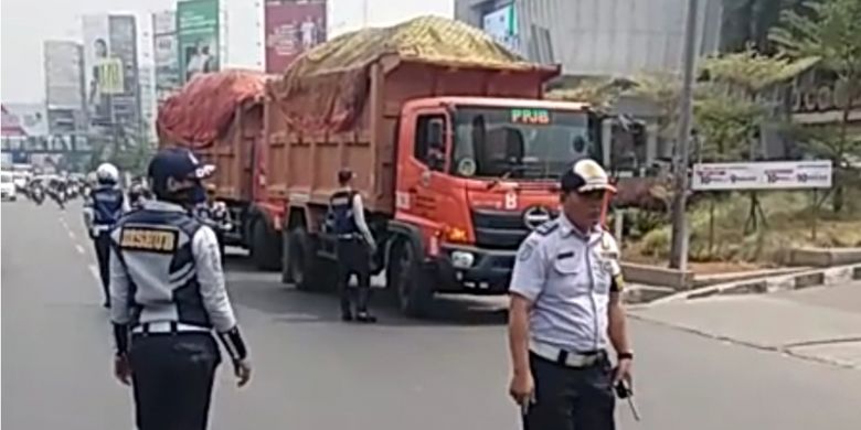 Kepala Dishub Kota Bekasi Yayan Yuliana mengatakan, penghentian truk-truk tersebut dilakukan setelah mengecek kelengkapan surat-surat kendaraan.