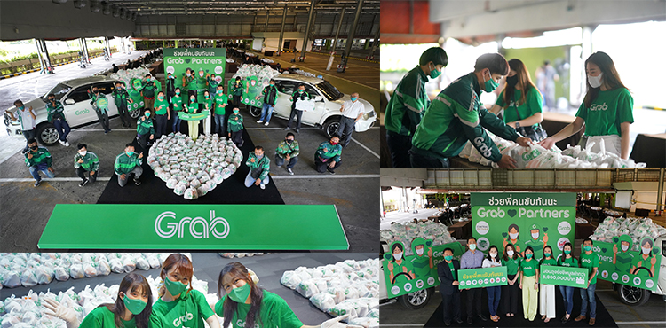 โดยได้ร่วมมือกับ 6 พันธมิตรสำคัญ อันได้แก่ กลุ่มเซ็นทรัล บริษัท ยูนิลีเวอร์ ไทย เทรดดิ้ง จํากัด บริษัท โอสถสภา จำกัด (มหาชน) บริษัท แบรนด์ ซันโทรี่ (ประเทศไทย) จำกัด บริษัท เบอร์ลี่ ยุคเกอร์ จำกัด มหาชน และ บริษัท สันติภาพ (ฮั่วเพ้ง 1958) จำกัด จัดทำถุงยังชีพที่บรรจุผลิตภัณฑ์อาหารและสินค้าอุปโภคบริโภคจากแบรนด์ชั้นนำ จำนวน 40,000 ชุด รวมมูลค่ากว่า 8 ล้านบาท เพื่อมอบความห่วงใยและส่งต่อกำลังใจให้แก่พาร์ทเนอร์คนขับของแกร็บทั่วประเทศที่ได้รับผลกระทบจากวิกฤตโควิด-19