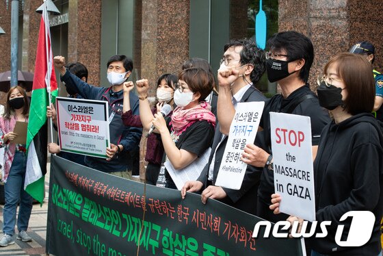 팔레스타인평화연대와 전국민주노동조합총연맹, 참여연대 등 160개 단체는 20일 서울 종로구 주한이스라엘 대사관 앞에서 기자회견을 열고 "가자지구 학살을 즉각 중단하고 팔레스타인과 시리아 점령지 전역에서 철수할 것을 촉구한다"며 이같이 밝혔다.