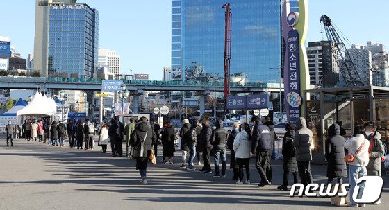| 오미크론 변이에 대한 우려가 커지는 가운데 1일 오전 서울 중구 서울역 광장에 마련된 코로나19 임시선별검사소를 찾은 시민들이 검체 검사를 받기 위해 대기하고 있다. 2021.12.1/뉴스1 © News1 박정호 기자 |