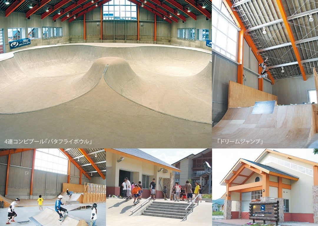 学校敷地内にある巨大パーク。屋外には様々なストリートセクション、屋内には4連コンビプール「バタフライボウル」や空中動作トレーニング用のスポンジプールを完備。日本のトップライダーが練習に使用する本施設で、毎日練習が可能です。
