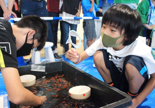 金魚すくいを競技スポーツとして楽しむ「姫路城金魚すくい選手権大会」が23日、兵庫県姫路市本町のイーグレひめじで初開催された。市内外の約200人が参加し、ポイ(すくい網)を片手に、大人も子どもも真剣な表情で取り組んだ。(山本 晃)
